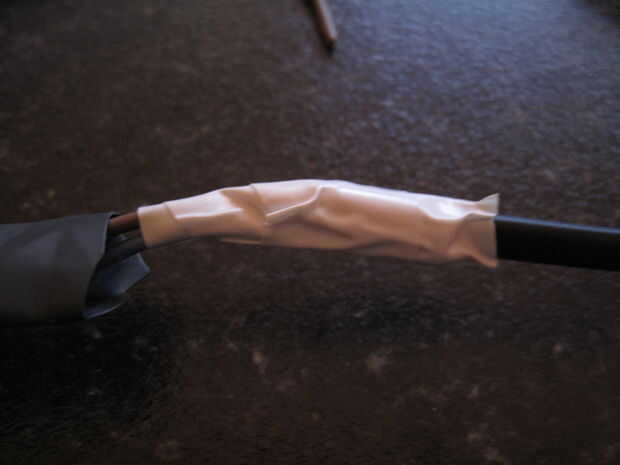cable de alimentación de mi Mac estaba deshilachada y el cableado fue expuesto en la hierba de la pared.  Reforzado el cable por el corte, montaje de algunos encoger de la tubería sobre el área desgastado y soldar el cable de nuevo juntos.Herramienta