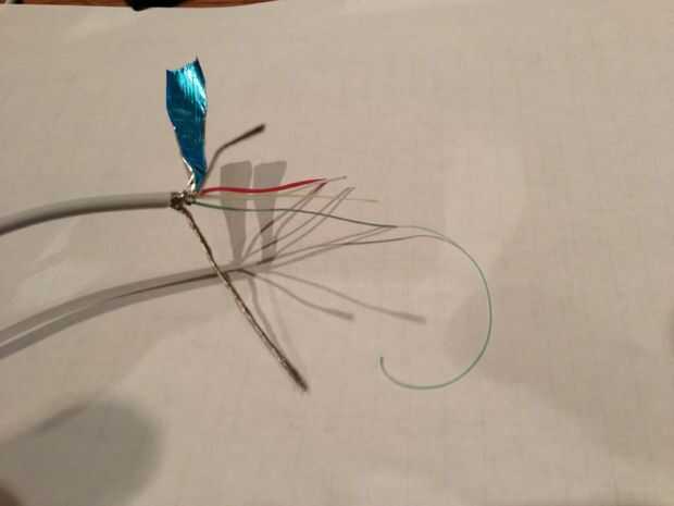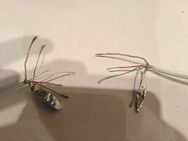 Pelar y cortar los cables con 1cm de solape. Si el cable verde es corto en un extremo, tiene que ser largo en el otro a la línea arriba correctamente. Es muy importante que mides las longitudes correctas o los cables se alinean en longitud después de que les vuelva a colocar.