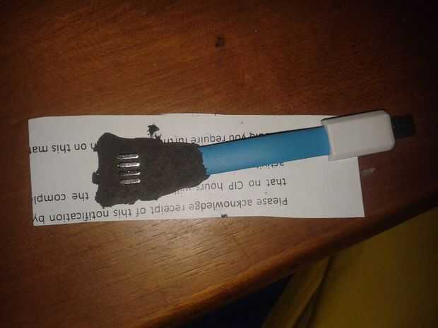 Raspe la arcilla que cubre las conexiones del metal para conseguir algo como la foto de arriba. Recuerde utilizar un pedazo de papel para proteger tu mesa! Hacerlo sobre una superficie plana para que el otro lado sigue siendo plano y la cosa entera de la forma como usted desea. Una cosa tener en cuenta es no hacer demasiado gruesa, ya no puede cambiar más adelante. Si es demasiado grueso no cabe en el puerto USB. Un buen espesor es aproximadamente de 2,5 mm.