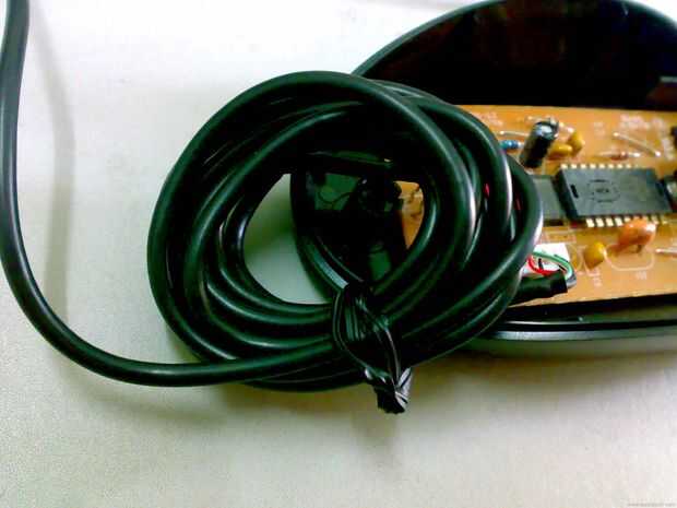 Ahora tratar de poner el alambre en un bucle y atarla con el sujetacable. Por favor asegúrese de que tener el tamaño adecuado del lazo que puede caber en la carcasa del ratón.