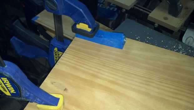 compré este jig de agujero del bolsillo cuando estaba construyendo mi tapa de radiador, así que pensé que sería otro buen uso para él. Los tornillos no añadir mucha rigidez a la placa, pero se mantienen todo ajustado mientras el pegamento seca. Tengo otro plan para mejorar la resistencia.