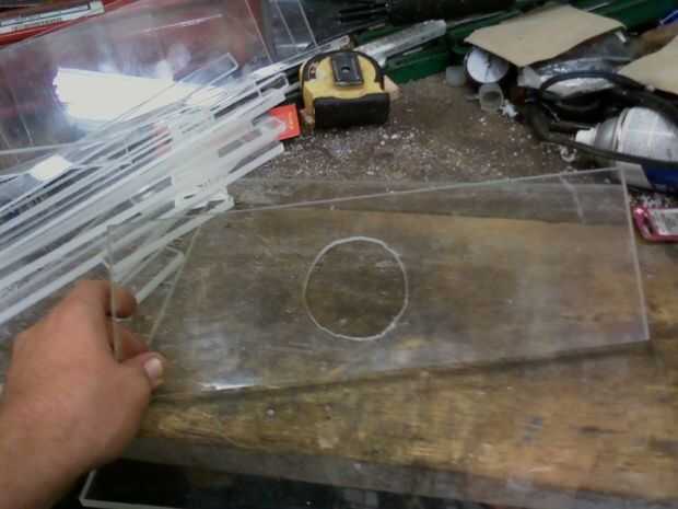 ahora es el momento para marcar el agujero del sub-woofer y utilice el mismo taladro con método y recórtalo.