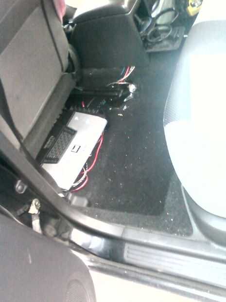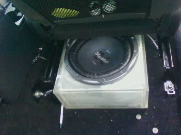 puse el subwoofer bajo el asiento del pasajero y el amplificador en el controlador.