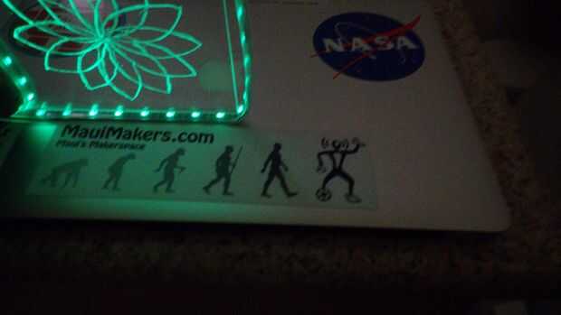 Este proyecto fue creado durante los Fabricantes de Maui "Dremel día construir" con la ayuda de algunos fabricantes de Maui impresionante (Brian, Lorayne, Laura, Jerry y todos los demás asistentes). Aprendí a usar el Dremel rotary y herramientas multi-max y volvía a casa con algo de diversión nuevo arte!