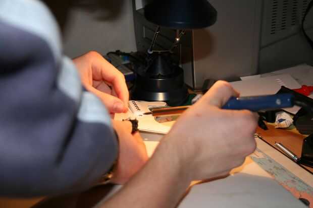 Nota: Recuerde poner los cables por el orificio antes de soldarlos en el interruptor, de lo contrario tendrás que les de la soldadura y volver a soldarlos correctamente porque, es probable que, usted no será capaz de poner el interruptor a través del orificio (dependiendo del tipo de interruptor).