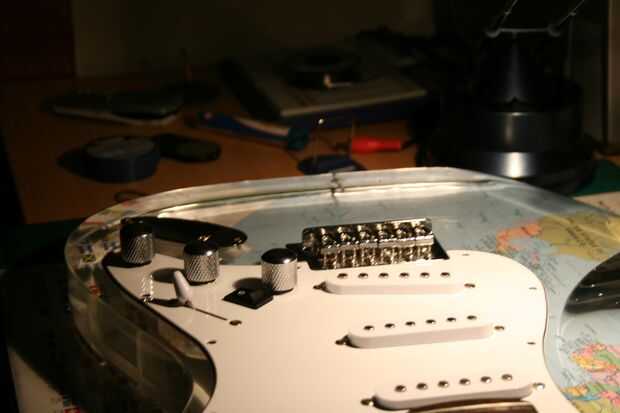 Guitar Hero de las rocas, pero realmente necesita algunas luces para amenizar la destrucción virtual.¿Qué hacer? CRAM en algunos LEDs!Paso 1: Abre Las dos piezas la parte de atrás de la guitarra es sólo una cuestión de sacar los tornillos de 16. Hay