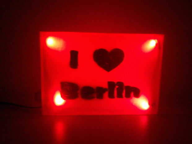 En la foto se puede ver una pequeña lámpara de LED que he construido. Se hace del acrílico y puedes grafitear cualquier patrón te gusta sobre ella y luz para arriba.