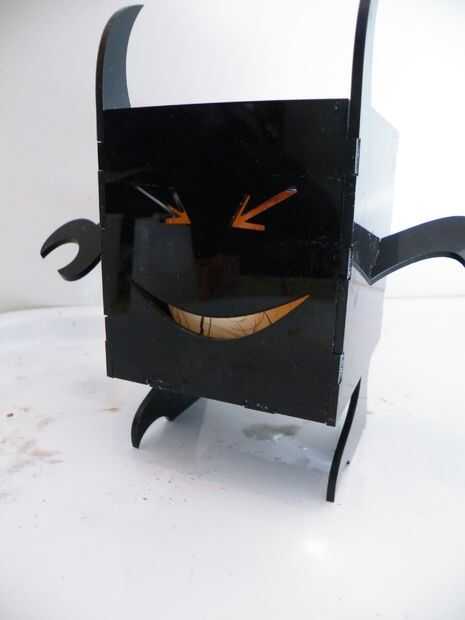 Para estas fotos, me quedé una vela pequeña dentro de Moodmonster para que sus características aparecieron en cámara (acrílico negro es un cerdo absoluto fotografiar correctamente!), pero eso me hizo pensar que también podría servir como una luz nocturna, sobre todo si él fue cortado de acrílico translúcido.