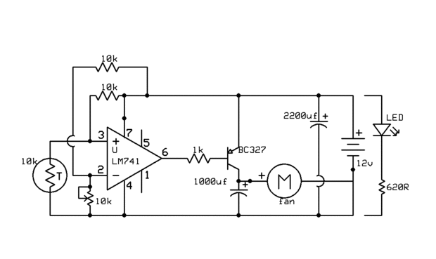 complete el circuito según el diagrama del circuito, el pote de 10 K se utiliza para cambiar el rango de temperatura o sensibilidad, aquí la ley de transistor BC327 como el interruptor de este circuito funciona de 9 - 12v DC. dispone de un condensador de 2200uf de filtro para un dc fuente se utiliza un paso abajo transformador o eliminator.8 pin IC base se utiliza para el IC741. el transistor de base o soporte se hace de la base(holder) de ic de 8 pines por romperse en dos mitades de 4pins cada y con los tres pernos para el transistor. Esto reducirá la quema del transistor al soldar. el LED indica si el circuito está en o es opcional