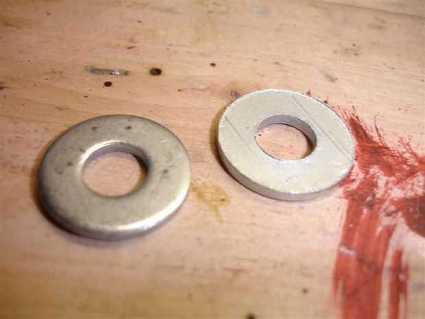 una lavadora, amplia en el exterior, con un orificio de 3/8" en el centro de 5/8"