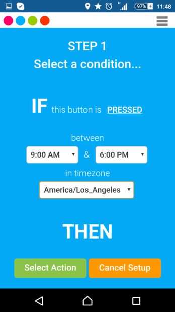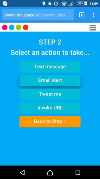 Para recibir una alerta de correo electrónico cuando la ventana se abre y activa el interruptor de láminas, necesitará configurar el 1btn usando la consola web. Configurar el botón, ya sea añadiendo nuevos o modificar su configuración actual, como se muestra en la captura de pantalla 1.