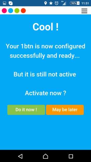 Configurar y configuración está completa. Haga clic en el botón "¡ hazlo ahora!" para activar su 1btn.
