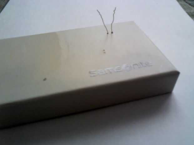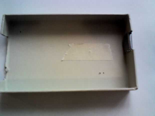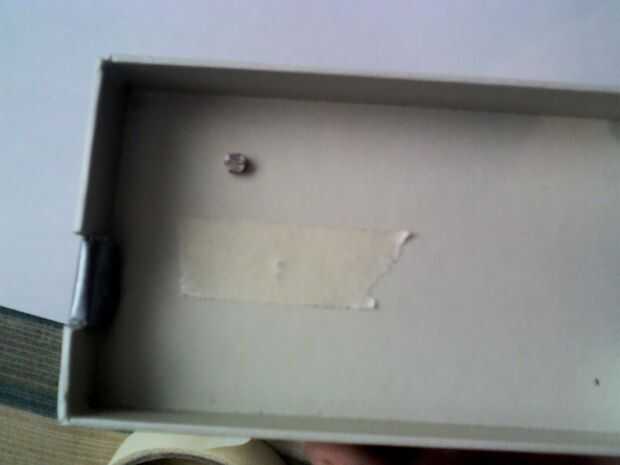 Entonces, he hecho otros dos agujeros muy pequeños en la tapa de la caja exactamente enfrente de donde está la pantalla del móvil. (El scotch de papel en la 2da foto es inútil)