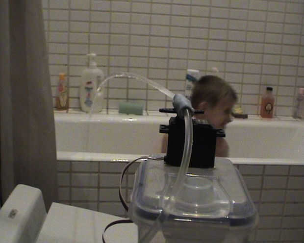 Esto fue diseñado para su uso en el jardín, pero como es invierno lo probamos en el cuarto de baño. ¡ Funciona!