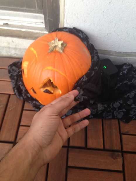 Ahora usando una bolsa de ziplock pequeñas Fije el sensor de Maxbotix y fijar a la nariz de la Jack-o-lantern