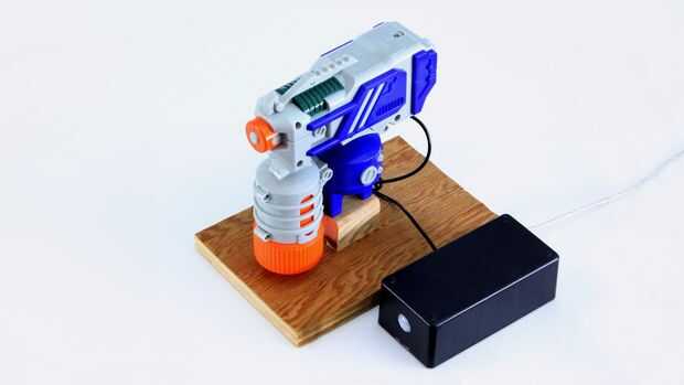 Ahora tu torreta de movimiento activado es completa. Configurarlo y esperar a su víctima a caminar por. Cuando lo hacen, su arma será automáticamente les sentido y dispararles.