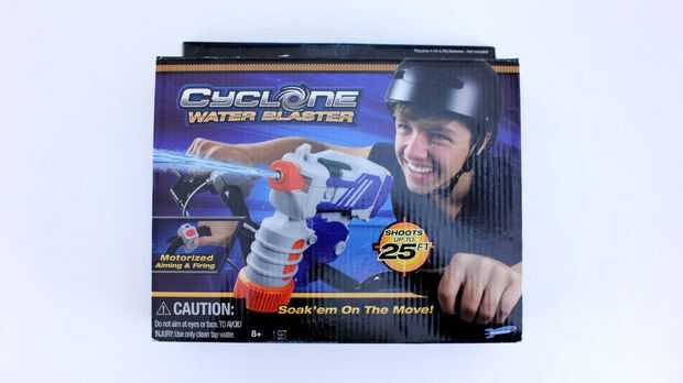 Para este proyecto, estoy usando el "ciclón agua Blaster". Se trata de una pistola automática de agua que está diseñada para montaje en el manillar de una bicicleta. Elegí éste porque tiene un motor incorporado que convierte el arma de lado a lado. Esto me permite darle un área más amplia. El accesorio de barra de la manija también hecho fácil montarlo en una plataforma.