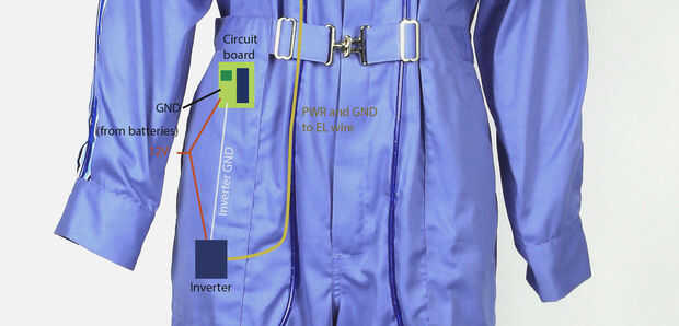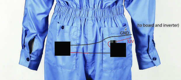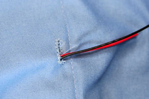 Para ayudar con el enrutamiento de los cables, he hecho ½" largo ojales en los interiores de los bolsillos por ranuras de corte y costura en los bordes.