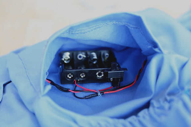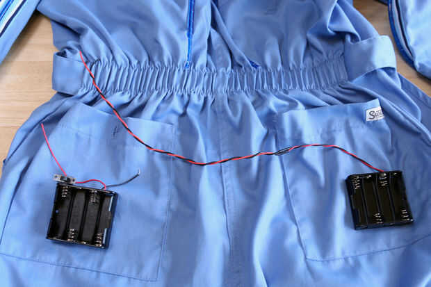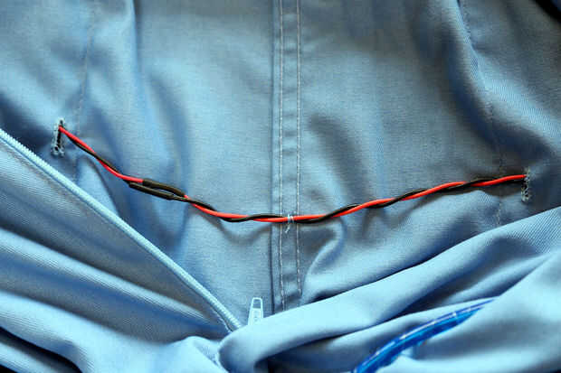 En general, ocasionalmente cosí los cables libremente en el interior del traje. Esto fue evitar ser atrapados en algo cuando el traje se pone en/sacado.