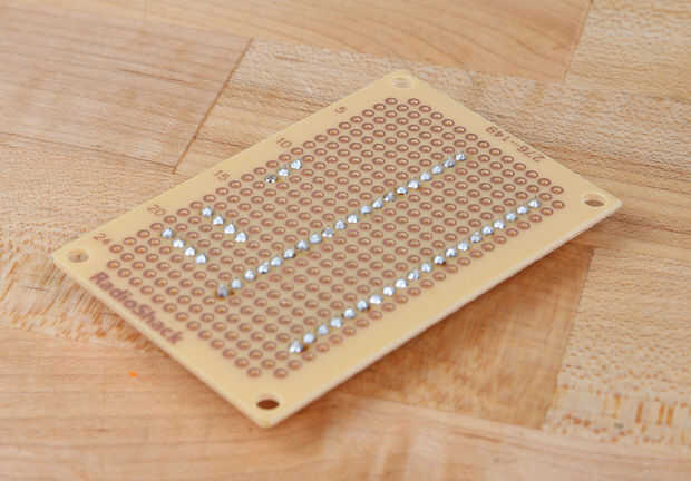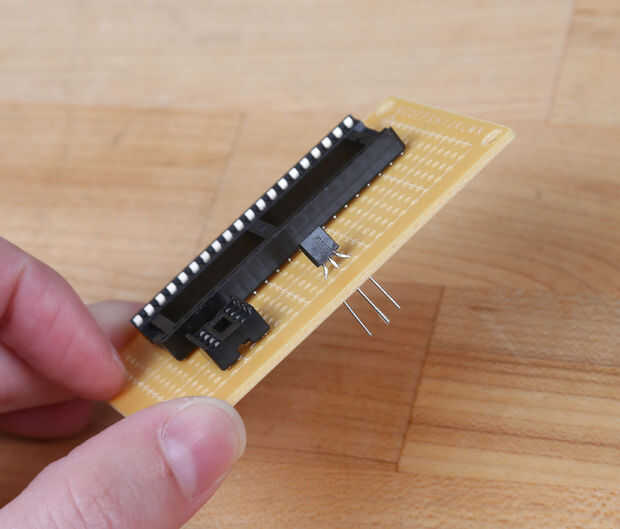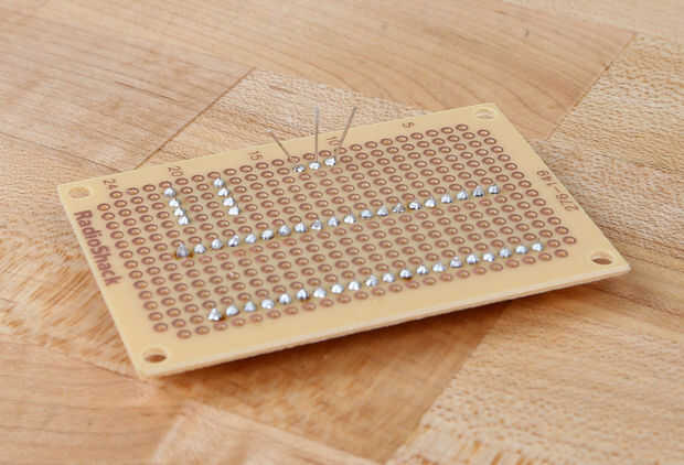 a continuación, soldado el transistor por lo que el emisor sería cerca de tierra. Separar las clavijas al soldar y enganche los cables cuando termines.
