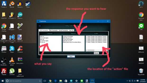- en el cuadro comando, escriba lo que dices que permitirá el reconocimiento de voz realizar una tarea