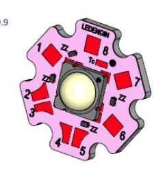 Cuando llegué el emisor en el correo, no tenía cables sobre ellos. Lo bueno de la 20MD00 LZ4 es que el LED está montado encima de MCPCB, que nos permite soldar los cables en el LED más fácilmente. Hay 8 cojines en los MCPCB-la hoja de datos me dice que es para cual cable. En realidad tuve algunos desafíos mientras se suelda los cables a lo MCPCB porque lo MCPCB chupa el calor, lo que hace difícil para el soldador a calentar las almohadillas. Entonces me di cuenta de que la hoja de datos realmente tenía consejos para soldar. Para este particular emisor de LED Engin, tuve que calentar el emisor con una placa caliente a 125-150 grados C antes de soldar los cables en. PRECAUCIÓN: diversos fabricantes tienen diversos procedimientos para la fijación de lo cables-asegúrese de que no sobrecalentar el emisor.