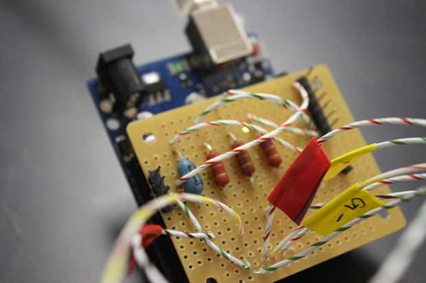 Después de que me aseguré de que mi primer prototipo funcionaba, he añadido un cuarto color ya que el LED estaba usando 4 colores. Con esto, he modificado el código del programa Arduino definiendo otro pin como entrada el cuarto LED. Desde allí y en, cambiado y añadido algunos códigos para que el LED hace el comando que quería hacer. He añadido los comandos BitVoicer, asignado a cada comando en una cadena de BitVoicer, entonces programación las funciones para cada cadena en Arduino. Después de que me aseguré que todo funcionaba, me transfirió todos los cables y resistencias y soldar todo en un perfboard.