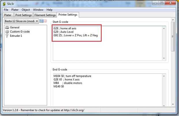 Puede que necesite añadir una línea de G92 para decirle a su impresora para que baje la boquilla después de sondeo. En este ejemplo, mi boquilla es .9mm por encima de la cama de impresión después de nivelar.
