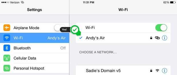Que el tiempo de iPads para negociar la contraseña. Usted sabrá que estás conectado cuando veas una marca de verificación junto al nombre de tu iPad en el lado derecho menú Wi-fi. Usted debe ser capaz de conectar hasta cinco 5 dispositivos de esta forma. Si usted tiene algún problema, mire la siguiente sección para solucionar algunos problemas o no dude en ponerse en contacto conmigo en: awallace916