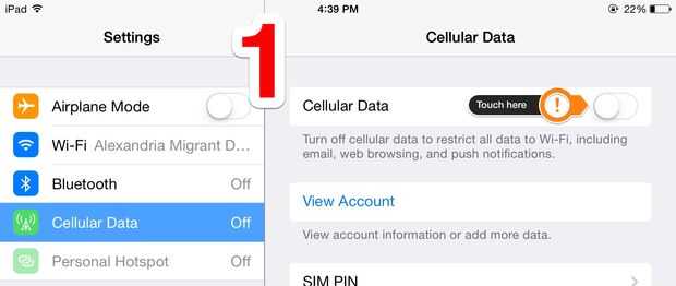 En el menú de la derecha, debería ver un botón al lado de "Datos móviles" que habrá encendido (véase el cuadro 1). Para activar datos celulares, simplemente toque el botón. Sabes que tienes cuando se torne verde (como se muestra en la figura 2).