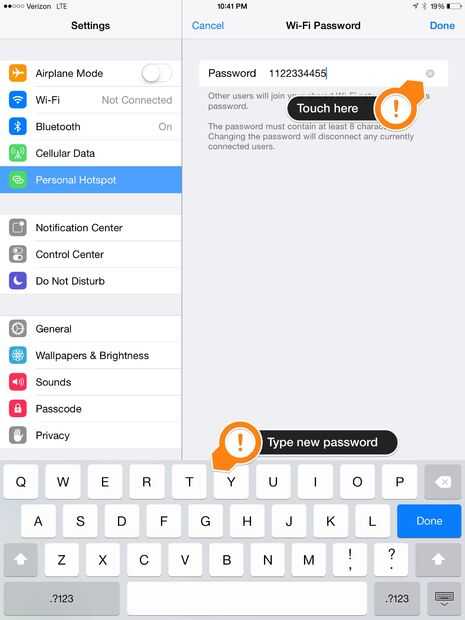 Su teclado debe aparecer (a menos que usted está usando un teclado bluetooth) y le permiten introducir una nueva contraseña. Borrar la contraseña anterior presionando la "x" a la derecha de la antigua contraseña. Lo que pones aquí depende de usted. Si vas a conectar a esta zona los niños mantener simple. El único requisito es que la nueva contraseña debe ser al menos ocho 8 caracteres largo. Golpe "Hecho" cuando has escrito la contraseña que desea utilizar. Verá que aparece en el menú de la derecha. A continuación que vamos a hacer fácil a los demás encontrar tu iPad.