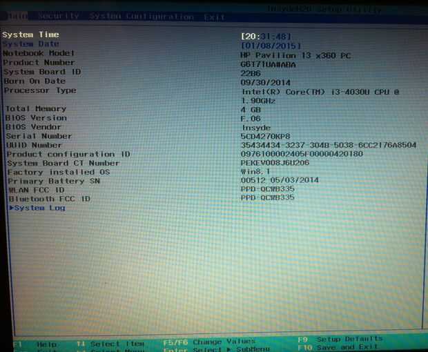 Esta es la primera pantalla que se debe ver. Ubicar las fichas en la parte superior y busque "Configuración del sistema". Puede utilizar las teclas de flechas para llegar a esa pestaña.