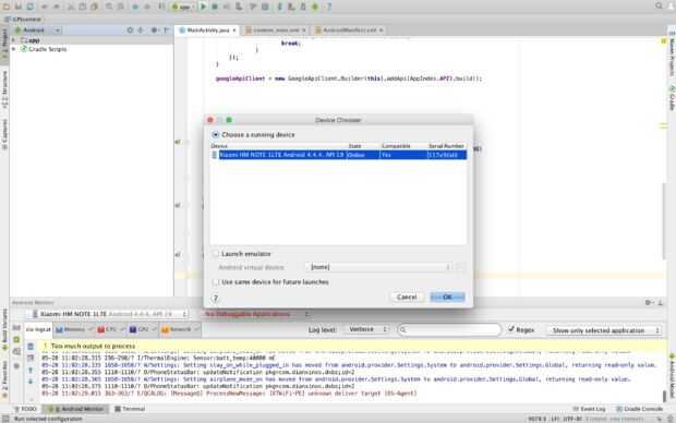 Ahora sólo conectar teléfono al pc y activar USB modo móvil de depuración y haga clic en estudio de android.