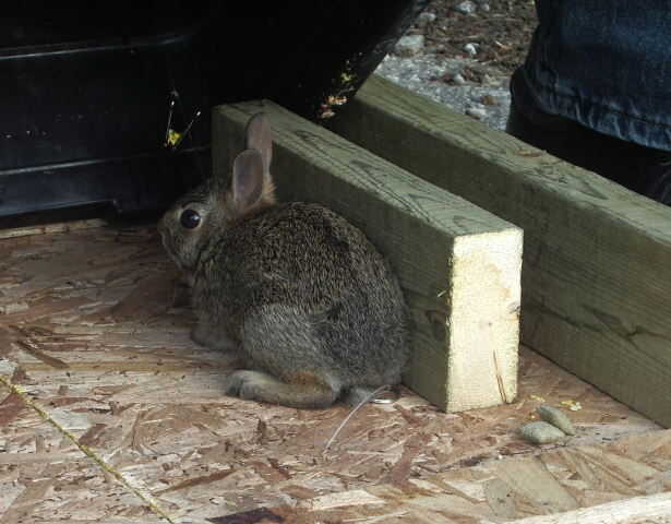 Sorprendentemente, después de levantar la caja de los conejos sentaron inmóvil largo suficiente para ser fotografiado antes de ejecutar el en el bosque.