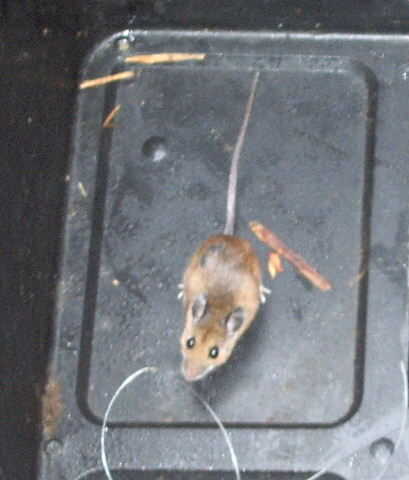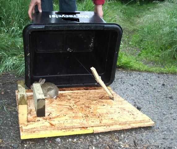16 de agosto de 2010 - había atrapado un ratón! Fue maravilloso saber que el mecanismo de liberación es lo suficientemente sensible como para hacer eso. Había quitado los ladrillos por este tiempo (realmente la cinta dio hacia fuera y se cayeron).