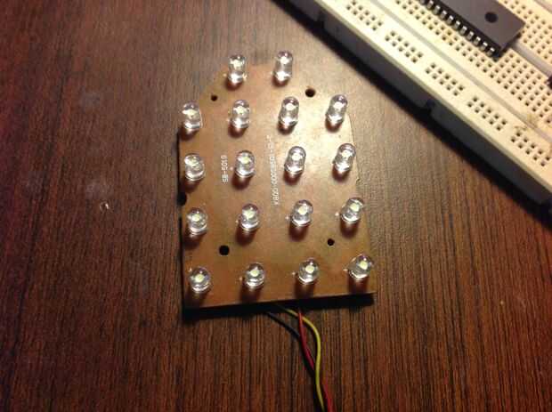 La lámpara LED consta de 18 LEDs blancos super brillantes, alimentados por un adaptador de pared 5v 200mA. El relé de control de esta lámpara. Conecte el alambre relés rojo COM, y el LED anode(+) en el NO (normalmente abierto perno, el que soldado un negro grueso). Cátodo de los LEDs (-) está conectado con del adaptador tierra o - alambre.