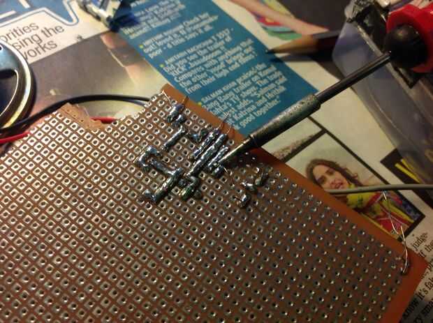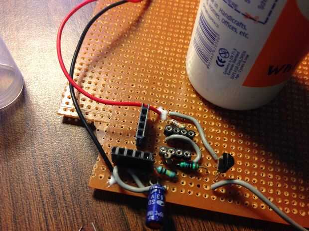 Utilicé un PCB de propósito general, pero usted puede corroer su circuito si quieres. Soldadura no es demasiado difícil, aunque puede que necesite algo de experiencia. Que utiliza sockets de berg para el 555 IC y hombres encabezados por dos transistores (por la razón, ver las fotos de arriba). Por supuesto, su opcional, pero aconsejan los novatos a seguir mi idea.