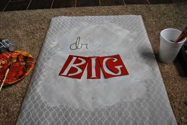 Para la palabra grande y he usado plantillas. Retocar y poner de relieve con la pintura de elección. He utilizado marcadores y pintura metalizada.