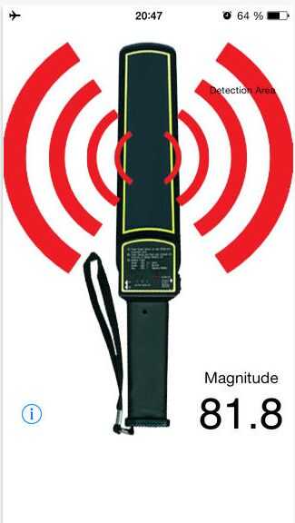 Si hay cualquier metal en el área, debe aumentar la fuerza del campo magnético. Sometimesthis aplicación permite encontrar cables eléctricos en paredes (como un localizador de montantes) y tubos de hierro en el suelo