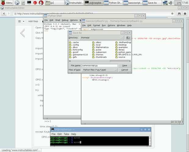 Copiar el siguiente código y guardar como /home/pi/camerascript.py