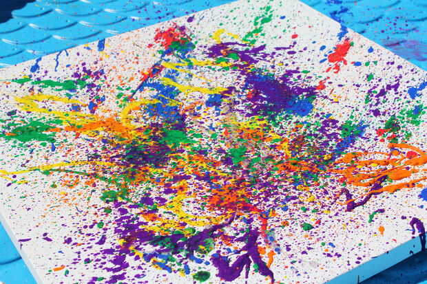 3. poner el lienzo en blanco en blanco dentro de la piscina. (También puede usar cartulina si usted no se la lona).