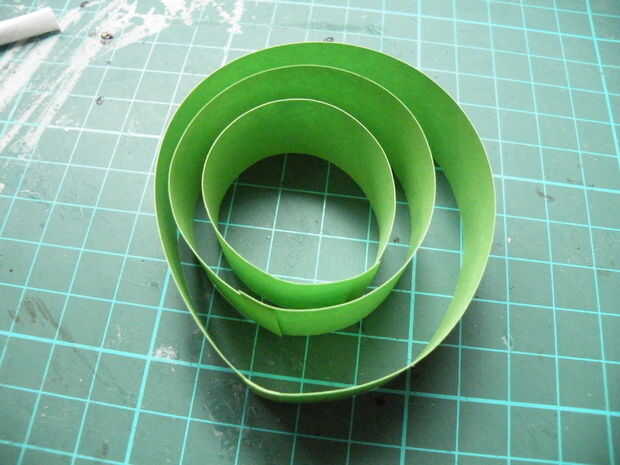Rizar cada tira de papel en un círculo y cinta o pegamento los extremos juntos.