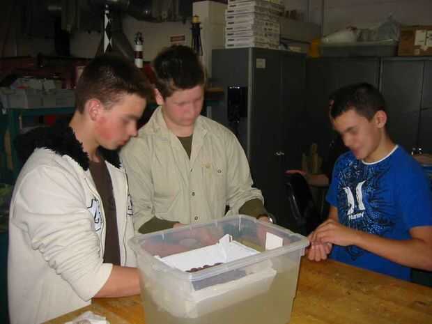 Aviso donde el envase se basa en el tanque con la carga inicial de penny. Si la mitad de las monedas fueron colocadas en el contenedor, entonces el contenedor debe estar mitad arriba y mitad abajo la línea de agua.