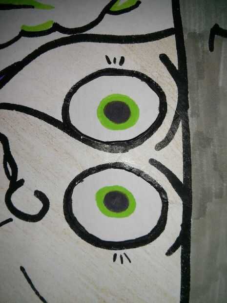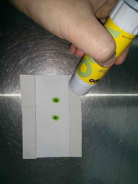 Luego coloque su hoja de color en la parte superior por lo que los ojos justo en el centro de los agujeros del ojo.