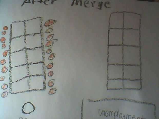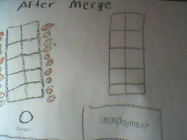 Ahora tome todos los trabajadores de la empresa perdedora y moverlos a la empresa ganadora pero mover el escritorio. hacer a los estudiantes compartir sillas. reactivar la línea de montaje. después de un tiempo pararlo y hacer este anuncio.