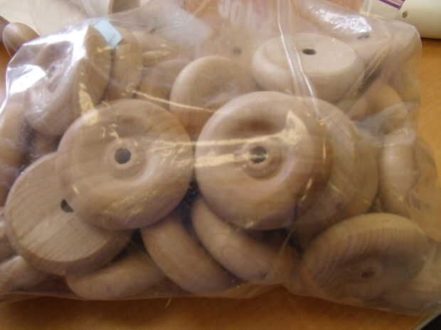 3) armar el resto de las piezas: 4 ruedas y los ejes junto con un perno de argolla con tuerca. - 3 + 4 + 5