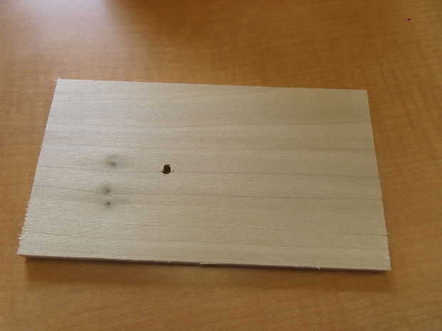 1) cortar el tablero a 6" y perfore un agujero de 1/8" en medio del tablero, de ancho y 2.5" de un extremo, lo largo. - 1
