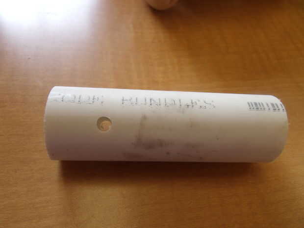 2) corte el PVC a 3.25" largos y otro 1/8" taladro 2.5" del final. - 2