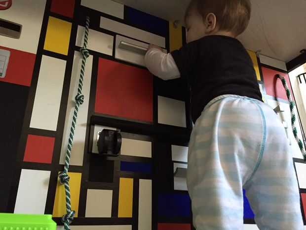 Este fue un proyecto limpio, que terminé el año pasado mientras que en licencia de maternidad. Mi hija fue aprender a levantar a sí misma en el tiempo y quiso agarrar las cosas. Ella también amaba tirando cables y tratando de destruir mi computadora. Matar dos pájaros con un proyecto he creado un Mondrian inspirado tablero de actividad para ella así que no tengo un ataque al corazón cada vez que ella se arrastró bajo la mesa. También cuenta con un archivo adjunto en un lado pintado para que parezca una caja de correos de Nueva Zelanda del decenio de 1980. Colocar en la parte inferior del escritorio de la computadora, con éxito escondió todos los cables y enchufes y mantuvo entretenidos para las edades - que para un bebé se mide en tramos de 10 minutos ;)