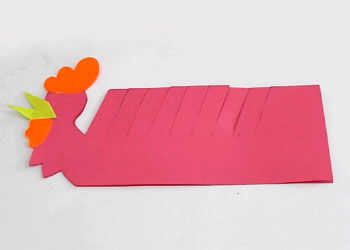 Ahora toma un papel naranja y extraer el peine y barbas de la gallina.